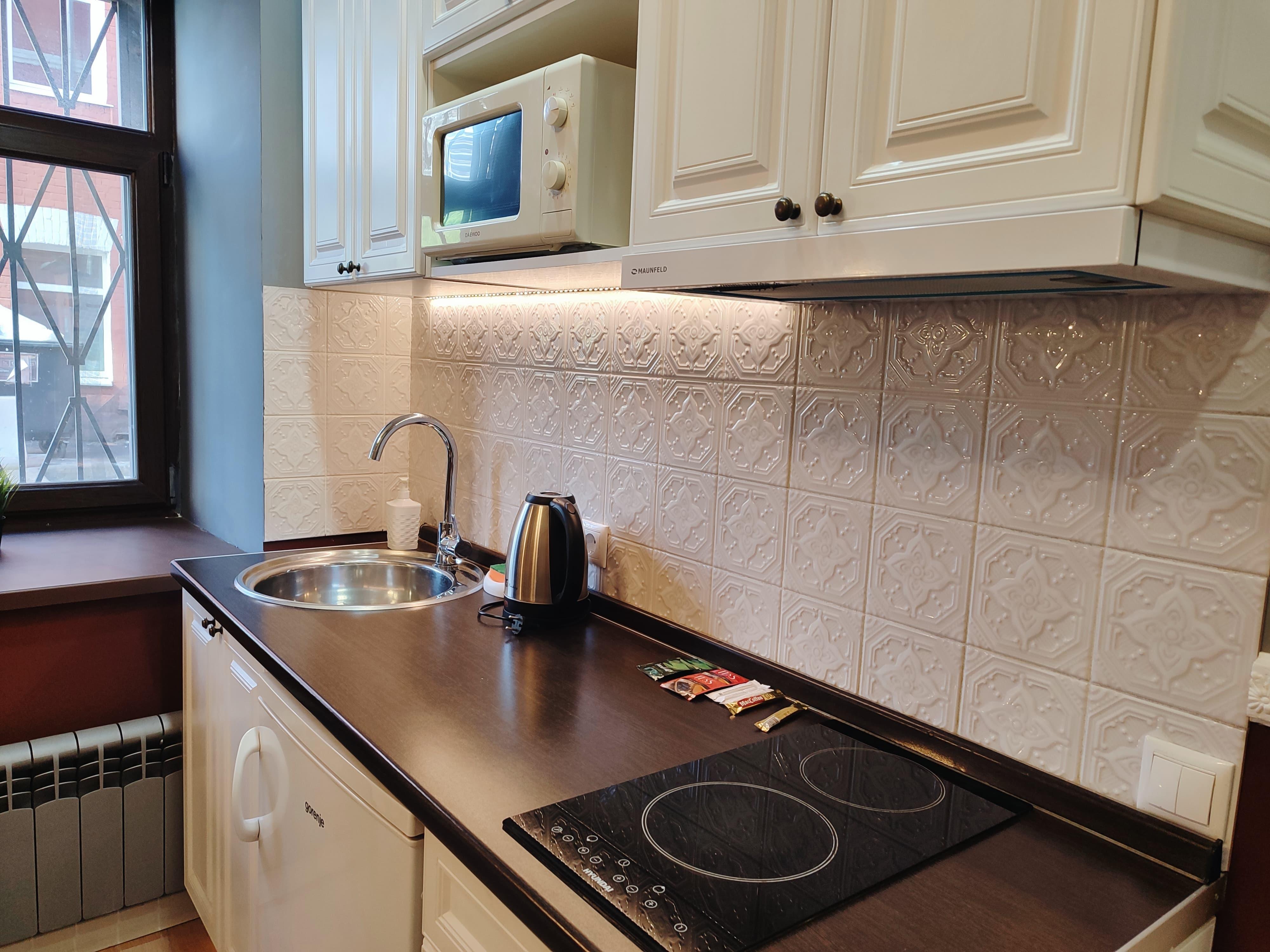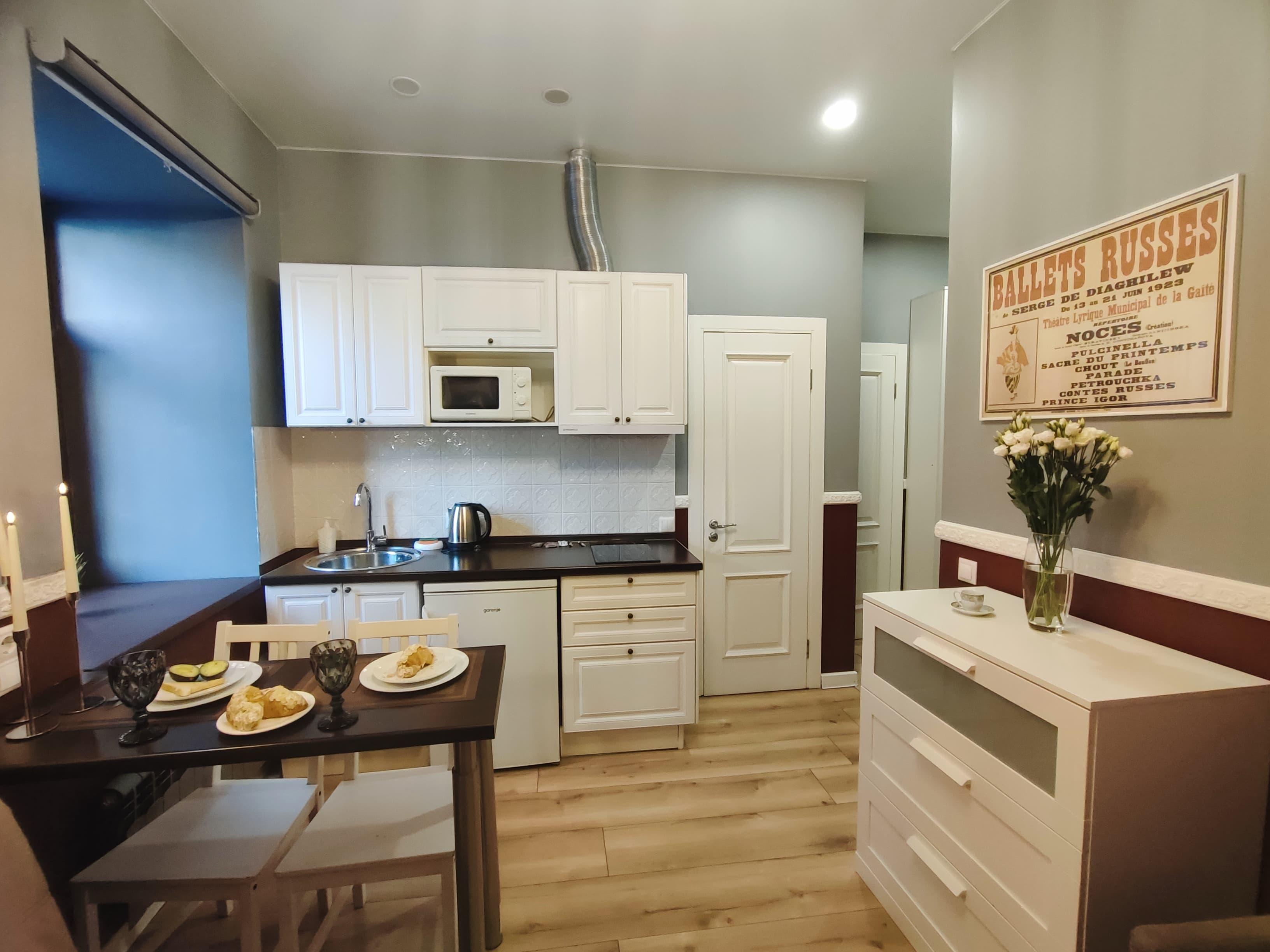 АНТУРАЖНАЯ И ЭЛЕГАНТНАЯ СТУДИЯ С БОЛЬШОЙ МЯГКОЙ КРОВАТЬЮ В ОТДЕЛЬНОЙ СПАЛЬНЕ, ДВУСПАЛЬНЫМ ДИВАНОМ И БАРНОЙ СТОЙКОЙ В ГОСТИНОЙ, НА 1 ЭТАЖЕ ИСТОРИЧЕСКОГО ЗДАНИЯ, В 10 МИНУТАХ ПЕШКОМ ОТ МЕТРО БАУМАНСКАЯ И 6 МИНУТАХ НА МЕТРО ДО ЦЕНТРА МОСКВЫ! ЕСТЬ НАПОЛЬНЫЙ КОНДИЦИОНЕР! 🕰КРУГЛОСУТОЧНОЕ САМОСТОЯТЕЛЬНОЕ ЗАСЕЛЕНИЕ! 💌БРОНИРУЙ И ЧЕРЕЗ 2 МИНУТЫ МЫ ПРИШЛЕМ ИНСТРУКЦИЮ ПО ЗАЕЗДУ! ✔ Вместимость — до 4 человек👥👥. 🔑 ЗАСЕЛЕНИЕ И УСЛОВИЯ ✅ Круглосуточное самостоятельное заселение: заезд с 14:00, выезд до 12:00. 📷 Фото паспорта для заключения электронного договора. 💰 Страховой депозит — 2000 рублей (возвращается при выезде) 📌 Регистрация иностранных граждан (при проживании от 7 дней) 📝 Отчётные документы и кассовый чек 📞 Звонки по бронированию — с 9:00 до 00:00 ⏰ Ранний заезд и поздний выезд по договоренности за доп. оплату. 🛏 Спальные места ✔ Отдельная спальня с двуспальной кроватью ✔ Двуспальный диван-аккордеон в гостиной 👶 Дети до 5 лет размещаются бесплатно без предоставления отдельного спального места 📦 В СТОИМОСТЬ ВКЛЮЧЕНО ✅ Чистое постельное белье ✅ Полотенца, тапочки, фен ✅ Средства гигиены (мыло, шампунь, гель, зубной набор) ✅ Wi-Fi и Smart TV ✅ Стиральная машина ✅ Утюг, гладильная доска (общие на 3 студии) 🍽 Мини-кухня: ▪️ Холодильник, микроволновка, электроплита, вытяжка, напольный кондиционер. ▪️ Электрочайник, тостер, фильтр-кувшин ▪️ Набор посуды, кастрюли, сковороды ▪️ Чай и кофе ☕, сахар, соль, специи 🛁 Санузел: ▪️ Душевая кабина с тропическим душем 🏙 Инфраструктура 🚘 Парковочные места вблизи дома 🛍 Всё необходимое рядом — идеальный вариант для отдыха и командировки 📜 Наши правила 🚭 Курение запрещено 🎉 Вечеринки не допускаются 🐾 Животные не допускаются 👥 Не более 4 гостей 📌 Один комплект белья на 2 человек. Дополнительный — 500 руб.