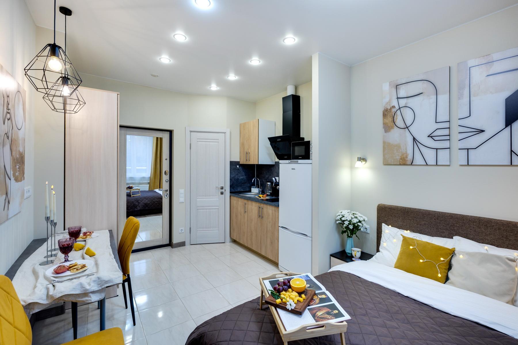🏡 Уютная студия «Эллида» от HOME24 в ЖК "Одинбург" для вашего идеального отдыха! Почувствуйте себя как дома в современной студии, выполненной в уютных и солнечных тонах. Идеальный вариант для пары или самостоятельного проживания, где каждая деталь создана для вашего комфорта и уюта. ✨ Что ждет вас внутри: Комфортный отдых: Уютная двуспальная кровать 140×200 см с ортопедическим матрасом и качественным постельным бельем. Современная техника: Полноценная кухня с индукционной варочной панелью, стиральная машина, фен, утюг, Smart TV и бесплатный Wi-Fi. Продуманные детали: Шторы blackout для отличного сна, фильтр для воды и вся необходимая посуда для приготовления любимых блюд. Забота о гостях: Приветственный набор (чай, кофе, сахар), комплекты полотенец и средства гигиены (шампунь, гель, мыло),а также тапочки. 🔑 Условия заселения — просто и четко: 🕰 Круглосуточное самостоятельное заселение: заезд с 14:00, выезд до 12:00. 💌 Бронируйте — и через 2 минуты вы получите инструкцию! 📝 Предоставляем отчетные документы и кассовый чек. 💰 Страховой депозит: 2000 рублей (возвращается при выезде). 👶 Дети до 5 лет — бесплатно (без отдельного места). 📜 Наши правила (для вашего комфорта): 🚭 Курение запрещено. 🎉 Без вечеринок. 🐾 Проживание с животными запрещено. 👥 Не более 2 гостей.