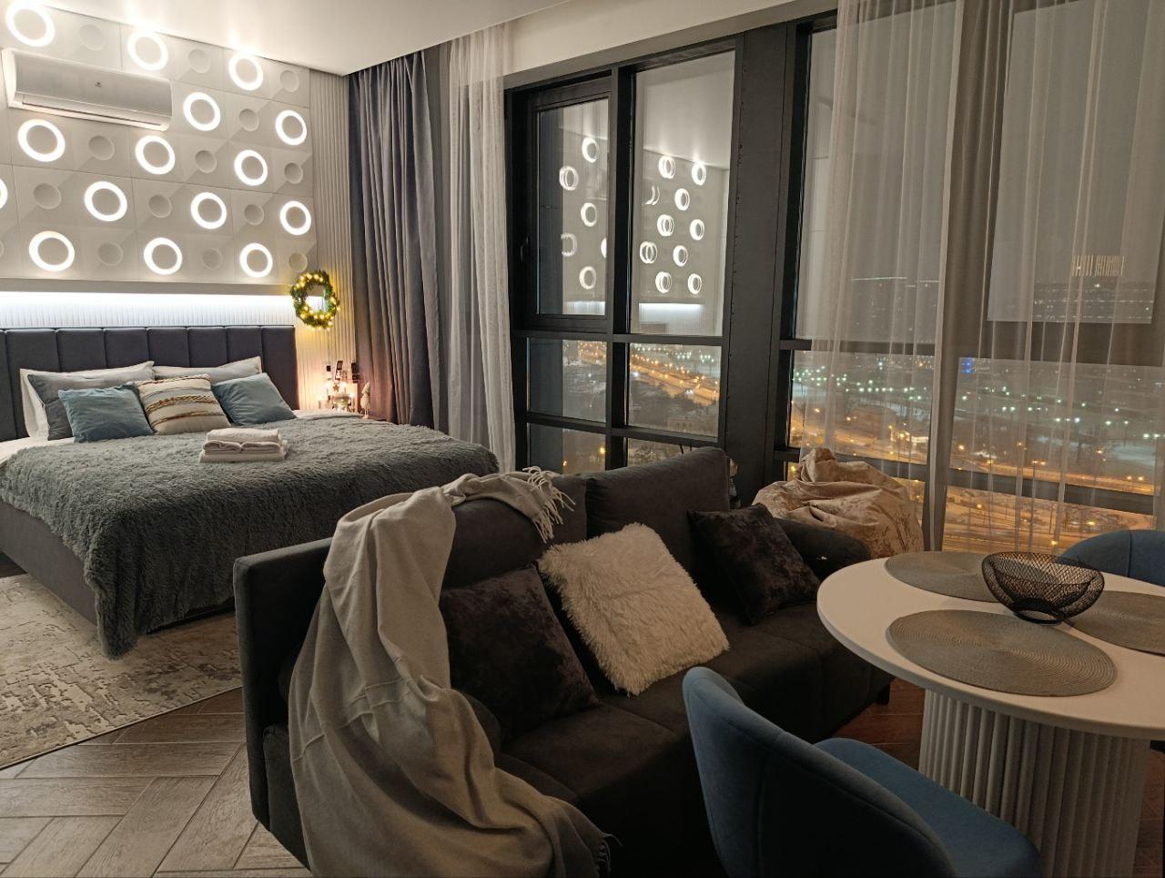 ПРЕМИАЛЬНАЯ СТУДИЯ «ОЛИМП» В ЖК «МЯТА»: ГДЕ РОСКОШЬ ВСТРЕЧАЕТСЯ С УЮТОМ Добро пожаловать в вашу городскую гавань бизнес-класса — студию «Олимп» от HOME24. Здесь панорамные окна от пола до потолка открывают головокружительный вид на Москва-Сити, а каждая деталь интерьера, продуманная дизайнерами, создает атмосферу гармонии для тех, кто ценит качество во всем. ✨ ВАШ ПРЕМИАЛЬНЫЙ ОАЗИС: — Комфорт без компромиссов: KING SIZE кровать (180x200 см) с ортопедическим матрасом и постельным бельем премиум-класса обеспечат глубокий сон. Раскладной диван идеален для гостей. — Умный дом для вашего удобства: кондиционер, посудомоечная машина, Smart TV, бесплатный Wi-Fi и автоматические шторы, которые мягко регулируют свет в зависимости от времени суток — технологии работают на ваш комфорт. — Панорамный релакс: примите душ с видом на небоскребы, создайте настроение с помощью дизайнерского освещения или уединитесь с книгой на уютном диване под мерцание свечей. — Забота о деталях: приветственный набор (кофе, чай, специи), капсульная кофемашина для идеального утра, средства гигиены, мягкие халаты, тапочки и отдельная стиральная машина — мы продумали всё, чтобы вы чувствовали себя как дома. 📍 СТРАТЕГИЧЕСКИ УДОБНОЕ РАСПОЛОЖЕНИЕ: — 5 минут пешком до Москва-Сити, 10 минут до метро «Полежаевская». — 10 минут на метро до Красной площади, быстрый выезд на Садовое кольцо и ТТК. — Рядом — лучшие рестораны, ТРЦ, парки (Фили, Ходынское поле) и культурные объекты. Аэропорты Шереметьево и Внуково — в 40 минутах езды. — Опция парковки: безопасное место в подземном паркинге ЖК (900 ₽/сутки). 🌳 ЖК «МЯТА»: ВАШ ЛИЧНЫЙ ОАЗИС В МЕГАПОЛИСЕ: Закрытая территория с озелененными зонами, детскими площадками, круглосуточной безопасностью и камерами наблюдения. Рядом — кафе, пекарни, фитнес-клубы и даже Боткинская больница (8 минут на авто). 🔒 ПРОСТО И НАДЕЖНО: — Круглосуточное самостоятельное заселение (заезд с 15:00, выезд до 12:00). — Инструкция по входу придет за час до прибытия.