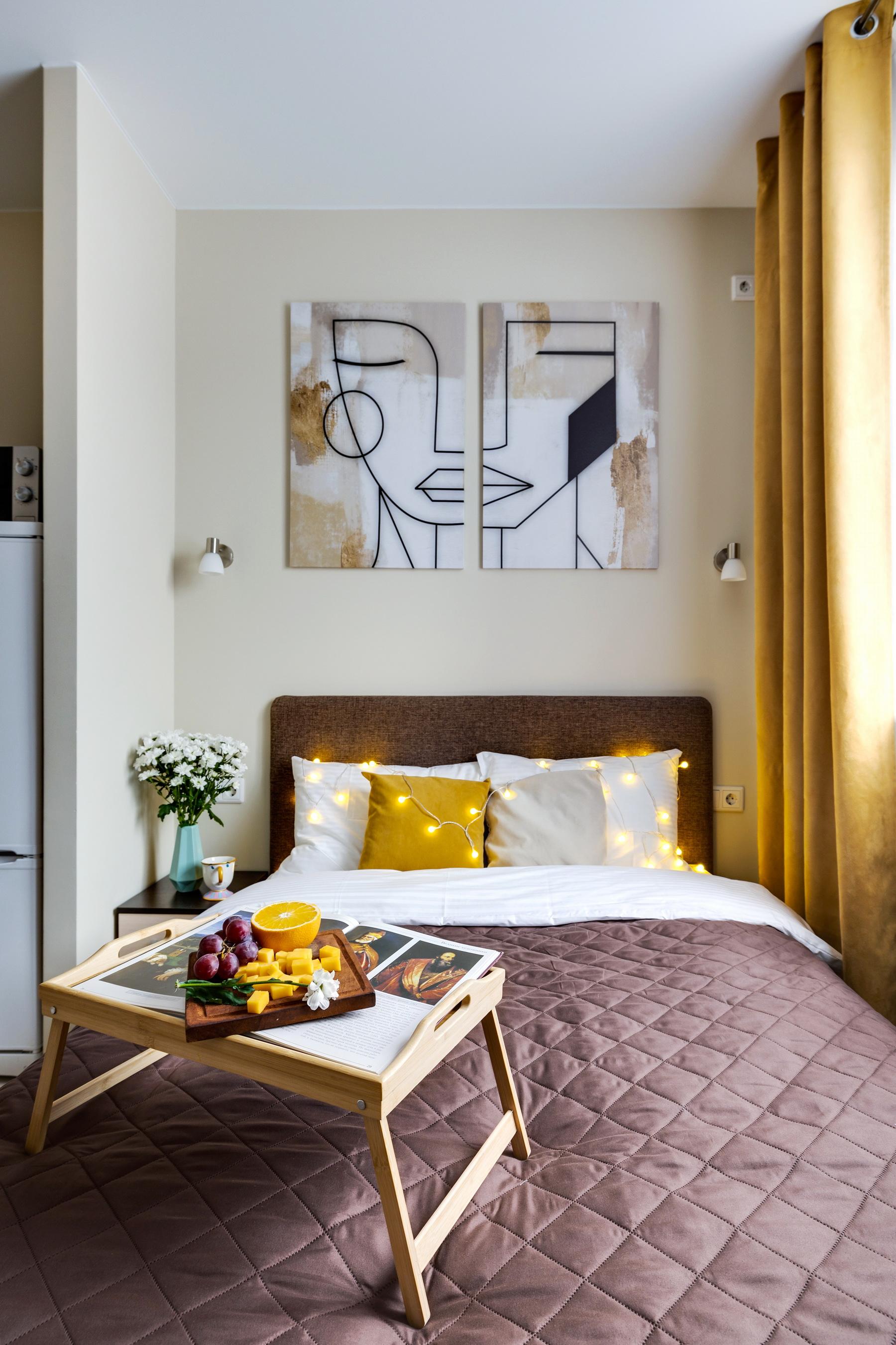🏡 Уютная студия «Эллида» от HOME24 в ЖК "Одинбург" для вашего идеального отдыха! Почувствуйте себя как дома в современной студии, выполненной в уютных и солнечных тонах. Идеальный вариант для пары или самостоятельного проживания, где каждая деталь создана для вашего комфорта и уюта. ✨ Что ждет вас внутри: Комфортный отдых: Уютная двуспальная кровать 140×200 см с ортопедическим матрасом и качественным постельным бельем. Современная техника: Полноценная кухня с индукционной варочной панелью, стиральная машина, фен, утюг, Smart TV и бесплатный Wi-Fi. Продуманные детали: Шторы blackout для отличного сна, фильтр для воды и вся необходимая посуда для приготовления любимых блюд. Забота о гостях: Приветственный набор (чай, кофе, сахар), комплекты полотенец и средства гигиены (шампунь, гель, мыло),а также тапочки. 🔑 Условия заселения — просто и четко: 🕰 Круглосуточное самостоятельное заселение: заезд с 14:00, выезд до 12:00. 💌 Бронируйте — и через 2 минуты вы получите инструкцию! 📝 Предоставляем отчетные документы и кассовый чек. 💰 Страховой депозит: 2000 рублей (возвращается при выезде). 👶 Дети до 5 лет — бесплатно (без отдельного места). 📜 Наши правила (для вашего комфорта): 🚭 Курение запрещено. 🎉 Без вечеринок. 🐾 Проживание с животными запрещено. 👥 Не более 2 гостей.