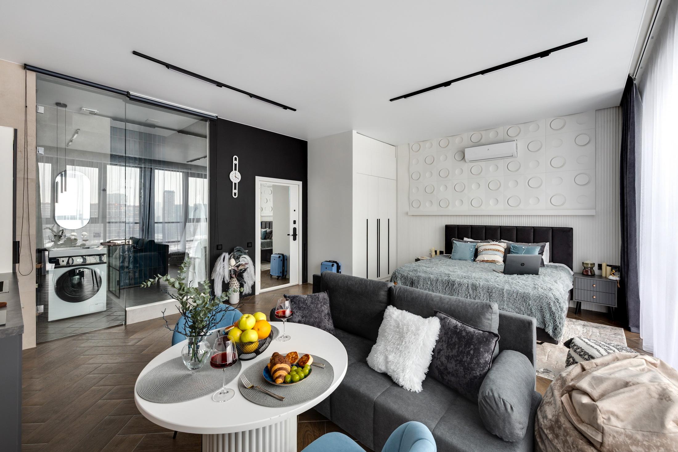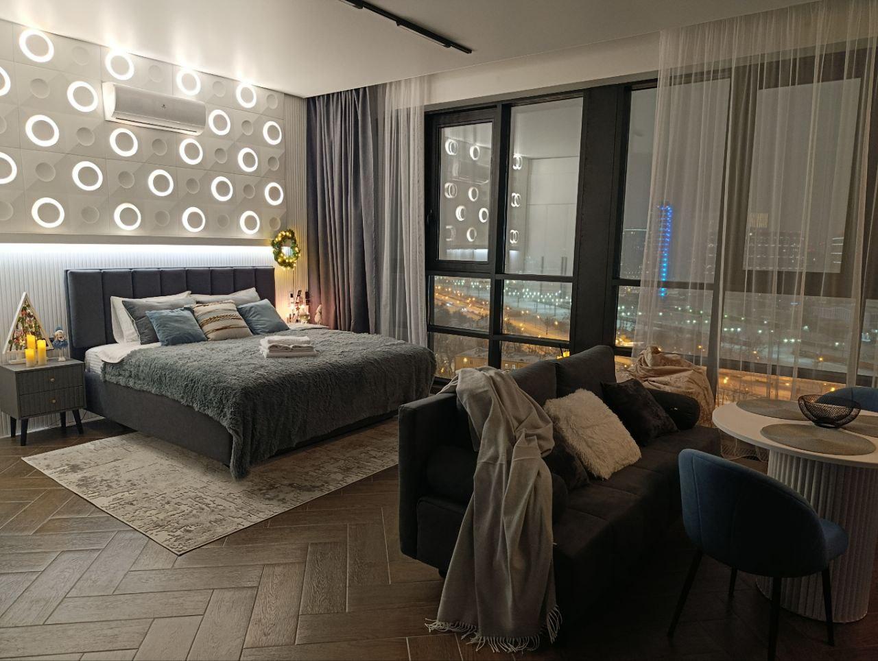 ПРЕМИАЛЬНАЯ СТУДИЯ «ОЛИМП» В ЖК «МЯТА»: ГДЕ РОСКОШЬ ВСТРЕЧАЕТСЯ С УЮТОМ Добро пожаловать в вашу городскую гавань бизнес-класса — студию «Олимп» от HOME24. Здесь панорамные окна от пола до потолка открывают головокружительный вид на Москва-Сити, а каждая деталь интерьера, продуманная дизайнерами, создает атмосферу гармонии для тех, кто ценит качество во всем. ✨ ВАШ ПРЕМИАЛЬНЫЙ ОАЗИС: — Комфорт без компромиссов: KING SIZE кровать (180x200 см) с ортопедическим матрасом и постельным бельем премиум-класса обеспечат глубокий сон. Раскладной диван идеален для гостей. — Умный дом для вашего удобства: кондиционер, посудомоечная машина, Smart TV, бесплатный Wi-Fi и автоматические шторы, которые мягко регулируют свет в зависимости от времени суток — технологии работают на ваш комфорт. — Панорамный релакс: примите душ с видом на небоскребы, создайте настроение с помощью дизайнерского освещения или уединитесь с книгой на уютном диване под мерцание свечей. — Забота о деталях: приветственный набор (кофе, чай, специи), капсульная кофемашина для идеального утра, средства гигиены, мягкие халаты, тапочки и отдельная стиральная машина — мы продумали всё, чтобы вы чувствовали себя как дома. 📍 СТРАТЕГИЧЕСКИ УДОБНОЕ РАСПОЛОЖЕНИЕ: — 5 минут пешком до Москва-Сити, 10 минут до метро «Полежаевская». — 10 минут на метро до Красной площади, быстрый выезд на Садовое кольцо и ТТК. — Рядом — лучшие рестораны, ТРЦ, парки (Фили, Ходынское поле) и культурные объекты. Аэропорты Шереметьево и Внуково — в 40 минутах езды. — Опция парковки: безопасное место в подземном паркинге ЖК (900 ₽/сутки). 🌳 ЖК «МЯТА»: ВАШ ЛИЧНЫЙ ОАЗИС В МЕГАПОЛИСЕ: Закрытая территория с озелененными зонами, детскими площадками, круглосуточной безопасностью и камерами наблюдения. Рядом — кафе, пекарни, фитнес-клубы и даже Боткинская больница (8 минут на авто). 🔒 ПРОСТО И НАДЕЖНО: — Круглосуточное самостоятельное заселение (заезд с 15:00, выезд до 12:00). — Инструкция по входу придет за час до прибытия.