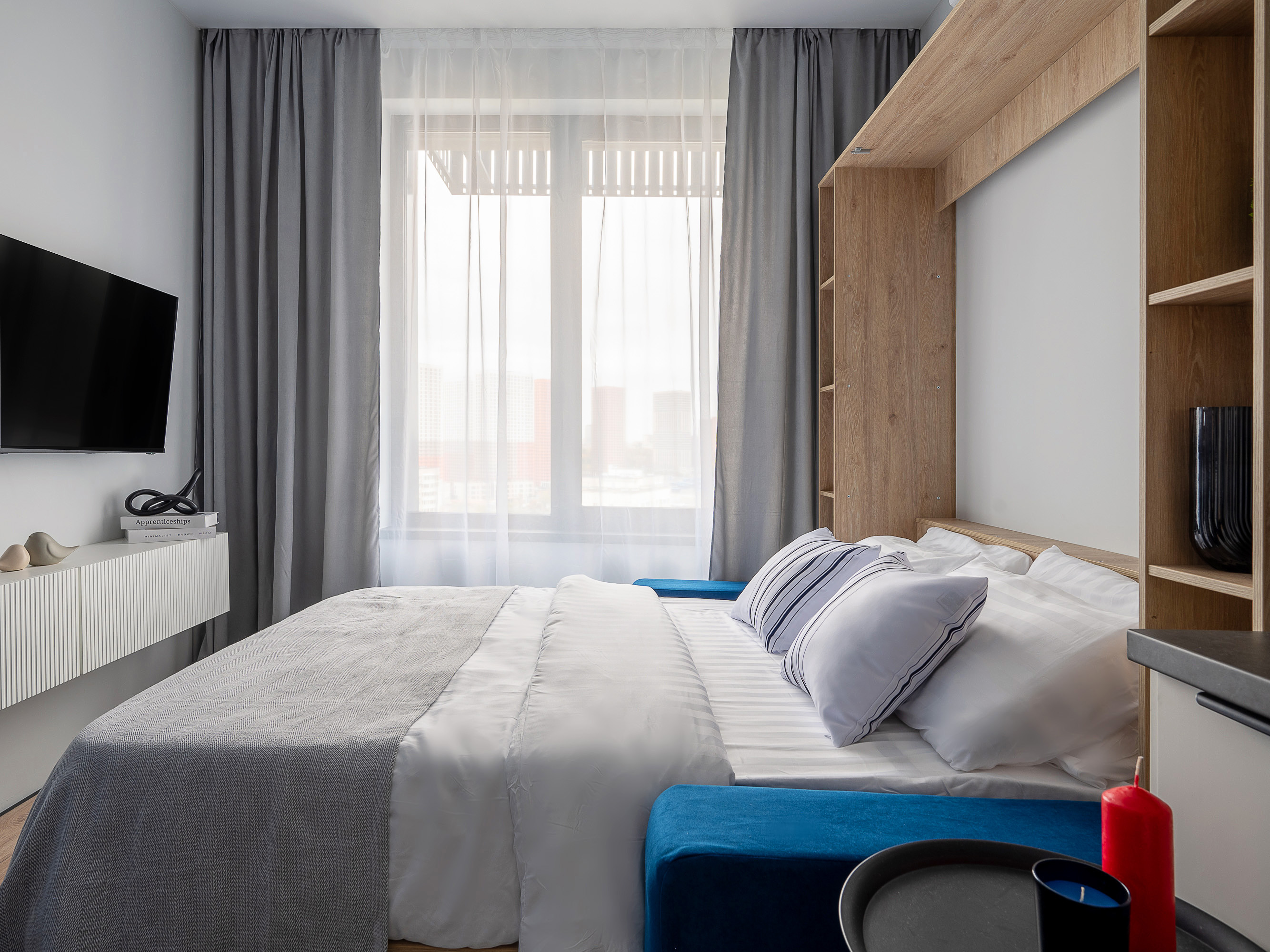 🏡КВАРТИРА-СТУДИЯ САПФИР ОТ HOME24.💍 🛎 СТИЛЬНАЯ И СОВРЕМЕННАЯ КВАРТИРА С КОНДИЦИОНЕРОМ И КРОВАТЬЮ-ТРАНСФОРМЕР, НА 19-ОМ ЭТАЖЕ В ЖК LEVEL НАГАТИНСКАЯ, В 15 МИНУТАХ ПЕШКОМ ОТ М. НАГАТИНСКАЯ. 🐶ЕСЛИ У ВАС ЕСТЬ ХВОСТАТЫЙ ДРУГ, БЕРИТЕ ЕГО С СОБОЙ! ВСЕГО 500 РУБ/СУТКИ! 🕰КРУГЛОСУТОЧНОЕ САМОСТОЯТЕЛЬНОЕ ЗАСЕЛЕНИЕ! 💌БРОНИРУЙ И ЧЕРЕЗ 2 МИНУТЫ МЫ ПРИШЛЕМ ИНСТРУКЦИЮ ПО ЗАЕЗДУ! ! Внимание: вход в подъезд имеет ограничения: зайти в подъезд возможно только при входе-выходе других людей. Далее у вас будет магнитный ключ от подъезда (находится в квартире). Учитывайте это пожалуйста при бронировании и позднем заезде. ✔ Вместимость - 2 человека. 🔑 ЗАСЕЛЕНИЕ И УСЛОВИЯ: ✅ Круглосуточное самостоятельное заселение: заезд с 14:00, выезд до 12:00. 📷 Фото паспорта необходимо для подписания электронного договора. 💰 Страховой депозит – 2000 рублей (возвращается при выезде) 📌 Возможна регистрация иностранных граждан (при проживании от 7 дней) 📞 Звонки по бронированию принимаем с 9:00 до 00:00 В КВАРТИРЕ ДЛЯ ВАС: ✅Двуспальная кроватью 160/200см с постельным бельем ✅Современная кухня, оборудованная: ✅Электрической плитой с духовкой вытяжкой ✅Холодильником ✅Эл. чайником ✅Микроволновкой ✅КОНДИЦИОНЕР ✅WI-FI🌐 ✅Спальная зона с двуспальной кроватью 160/200см и Smart TV ✅Ванная комната со стиральной машиной и душем ГОСТЯМ ПРЕДОСТАВЛЯЕМ: ✔ Комплект полотенец ✔ Средства гигиены (шампунь, гель, мыло, зубной набор) ✔ Тапочки РЯДОМ НАХОДИТСЯ: ▶️Нагатинская пойма ▶️ТРЦ "Ривьера" ▶️Парки: "Коломенское" и "Нагатинская набережная" ▶️Офисы крупных компаний ▶️Медицинские и образовательные учреждения 📜 НАШИ ПРАВИЛА: 🚭 Курение запрещено 🎉 Без вечеринок 🐾 Проживание с животными — возможно (500 руб./сутки) 👥 Не более 2 человек ⏰ Ранний заезд и поздний выезд — по договоренности за доп. оплату. 👶Дети до 5 лет размещаются БЕСПЛАТНО без предоставления отдельного спального места.